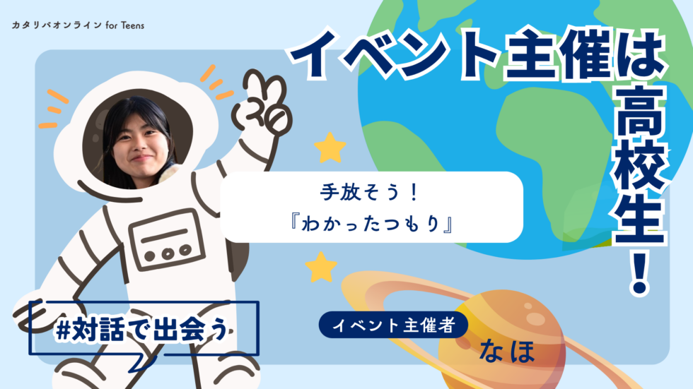 全国の高校生の探究活動・マイプロジェクトを支援するカタリバオンライン for Teensのスタッフ。 Teensのプログラム企画やイベント開催・プレゼンテーションを高校生向けに実施。