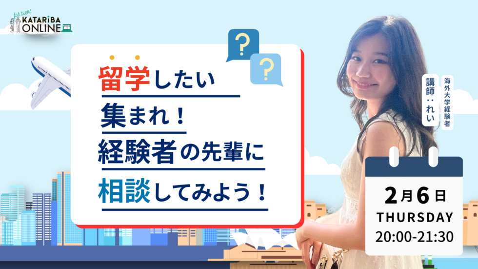 向き合っているお悩みはどんなものでも大丈夫です!海外に行きたいという想いを持っている方、ぜひ参加してください!